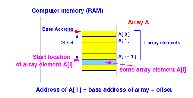 배열의 시작 과 배열 요소 A[i] 의 시작 사이에 i 개의 배열 요소 가 있습니다 .